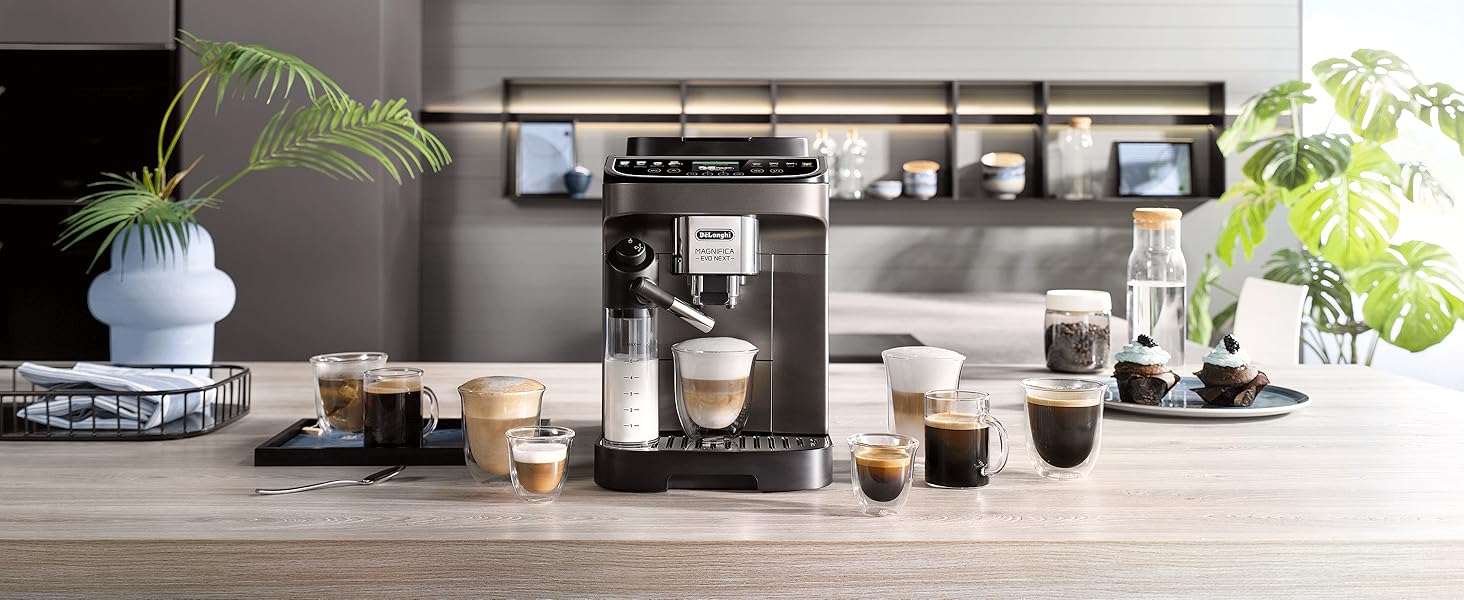 Always freshly ground and perfectly brewed. With advanced technology, authentic drinks and elegant, modern design, the Magnifica Evo Next embodies the De'Longhi experience. The world of coffee variety is just a push of a button away.